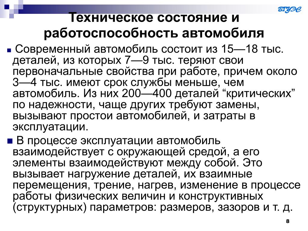 Влияние условий эксплуатации на работоспособность ТС