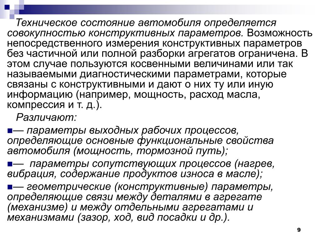 Критерии технического состояния ТС