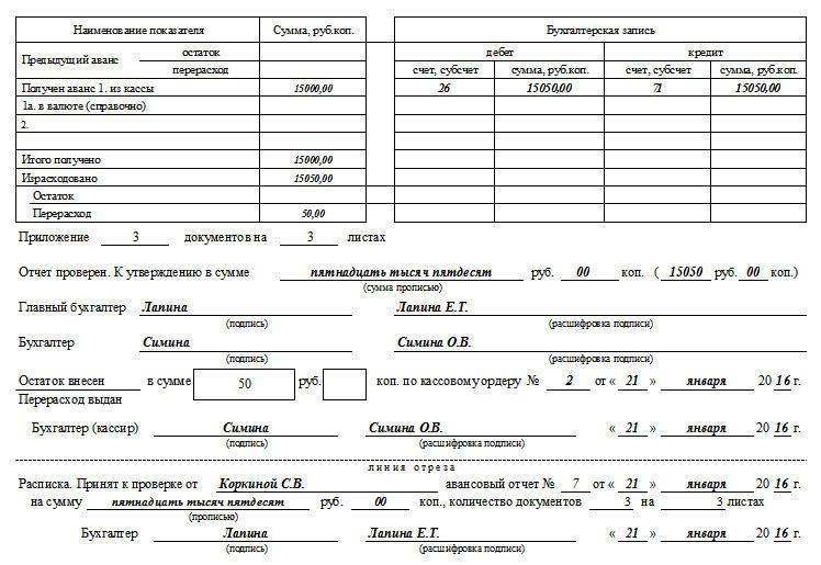 Неиспользованные денежные средства сотрудник возвращает, отразить это можно через Поступление в кассу или Поступление на расчетный счет. Документы можно создать на основании Авансового отчета. Либо если расходы сотрудника превысили выданные ему средства, то создается документ Списания наличных или Списание с расчетного счета.