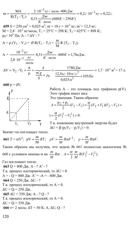 Решение : тепловая энергия льда и воды равна $ Q_i = m_ic_i \ Delta T_i $ и $ Q_w = m_wc_w \ Delta T_w $ соответственно. Теперь, решив массу m и приравняв их (поскольку в вопросе сказано, что масса обоих образцов одинакова), мы можем получить \ begin {align *} m_i & = m_w \\\ frac {Q_i} {c_i \ Delta T_i} & = \ frac {Q_w} {c_w \ Delta T_w} \\ \\ \ Rightarrow \ frac {c_i} {c_w} & = \ Big (\ frac {Q_i} {Q_w} \ Big) \ Big (\ frac {\ Delta T_w} {\ Delta T_i} \ Big) \\ \\ & = \ Big (\ frac {Q_i} {Q_w} \ Big) \ Big (\ frac {20-15} {- 5 – (- 10 )} \ Big) \\ \\ & = \ Big (\ frac {Q_i} {Q_w} \ Big) \ end {align *} Поскольку $ Q_i Решение : снова применяя определение теплоемкости, мы имеем \ begin {align *} c & = \ frac {Q} {m \ Delta T} \\ \\ & = \ frac {-569 \, {\ rm cal }} {200 \, {\ rm g} \, (25-40)} \\ \\ & = 0.19 \ quad {\ rm cal / g \ cdot K} \ end {align *}, поскольку тепловая энергия покинула вещество, поэтому стоит знак минус. Решение : в этой задаче даны передаваемое тепло $ Q $ и изменение температуры $ \ Delta T $. Используя формулу удельной теплоемкости, мы имеем \ begin {align *} c & = \ frac {Q} {m \ Delta T} \\ \\ & = \ frac {100 \, {\ rm J}} {0.\ circ C}} \ end {align *} Обязательно переводите граммы в килограммы. В задачах другого типа удельная теплоемкость определяется калориметрическим методом. В задачах калориметрии удельная теплоемкость образца определяется путем помещения его в определенное количество воды с известной температурой. Эта система изолирована, поэтому сумма всех выигрышей или потерь энергии всеми объектами в системе равна нулю, т.е. $ \ Sigma Q_i = 0 $, где $ Q_i $ – энергия i-го объекта. Если мы измеряем температуру точки равновесия, то мы можем решить приведенное выше уравнение для неизвестной удельной теплоемкости, чтобы найти ее. Ниже представлены некоторые задачи определения теплоемкости с помощью этого метода. Задача (8): 125-граммовый блок вещества с неизвестной удельной теплоемкостью и температурой 90 ° C помещается в изолированный ящик, содержащий 0,326 кг воды при 20 ° C. Равновесная температура системы 22,4 ° C. Какова удельная теплоемкость блока? Решение : поскольку температура блока больше, чем температура воды, блок теряет тепловую энергию, а вода получает ее.\ circ C} \ end {align *} Следовательно, перед более теплым объектом помещается негатив, чтобы обе стороны указанного выше равенства стали положительными. Подробнее об этом читайте на странице Проблемы и решения термодинамики . Имейте в виду, что если какой-либо объект теряет тепло, мы должны поместить перед ним негатив.\ circ C} \ end {align *} Эта система изолирована. После достижения системой теплового равновесия ее температура становится равной 290 К. Какова удельная теплоемкость неизвестного вещества в кал / г ° C? (Удельная теплоемкость меди 0,093 кал / г ° C). Решение : медь теряет тепло, а неизвестное вещество получает это количество потерянного тепла, учитывая полную изоляцию. Как и в предыдущих вопросах, мы получаем \ begin {align *} m_s c_s (T_f-T_s) & = -m_c c_c (T_f-T_c) \\ \\ \ Rightarrow c_s & = \ frac {m_c c_c (T_c-T_f)} { m_s \, (T_f-T_s)} \\ \\ & = \ frac {(5000) (0,093) (320-290)} {2000 \ times (290-280)} \\ \\ & = 0,6975 \ quad { \ rm cal / g \ cdot K} \ end {align *} Выше нижние индексы s и c обозначают вещество и медь, соответственно. Примечание: в уравнениях калориметрии, где появляется изменение температуры, можно использовать температуру Цельсия или Кельвина, потому что изменение Цельсия равно изменению в Кельвине. Решение : твердое тело теряет тепло, а жидкость поглощает его, поэтому $ Q_f = -Q_s $, где f и s обозначают жидкость и твердое тело, соответственно.Из определения теплоемкости мы можем найти тепло, передаваемое во время процесса, как показано ниже \ begin {align *} m_f c_f (T-T_f) & = -m_s c_s (T-T_s) \\ \\ \ Rightarrow \ frac { c_f} {c