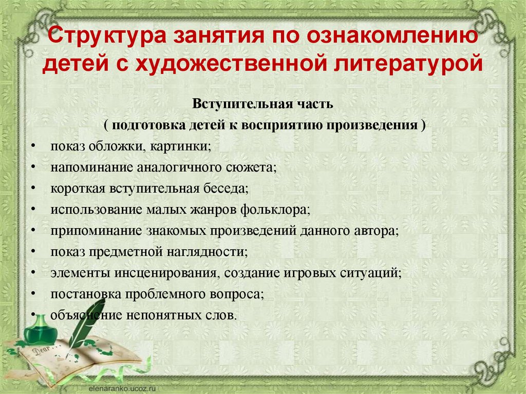 Согласно традиционной методике ознакомления дошкольников с художественной литературой, одним из обязательных фронтальных или групповых видов литературных занятий считалось заучивания наизусть стихов. Но исследования психологов показали, что заучивание наизусть – процесс глубоко индивидуальный, связанный с особенностями памяти, эмоциональной сферы каждого ребенка, поэтому его нельзя приспосабливать к коллективной форме организации занятий. Настаивать на этом – насиловать детскую природу.
