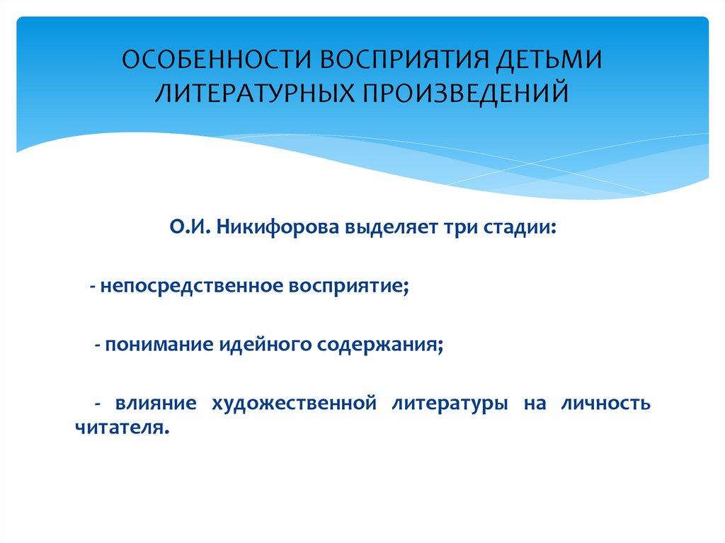 Третья – влияние художественной литературы на личность ребенка как конечный результат восприятия художественных произведений.