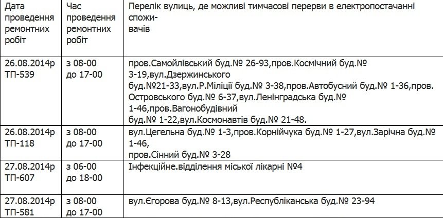 | Поставщик (энергораспределительная компания) | Тариф (грн. за 1 МВт⋅час, без НДС) | |