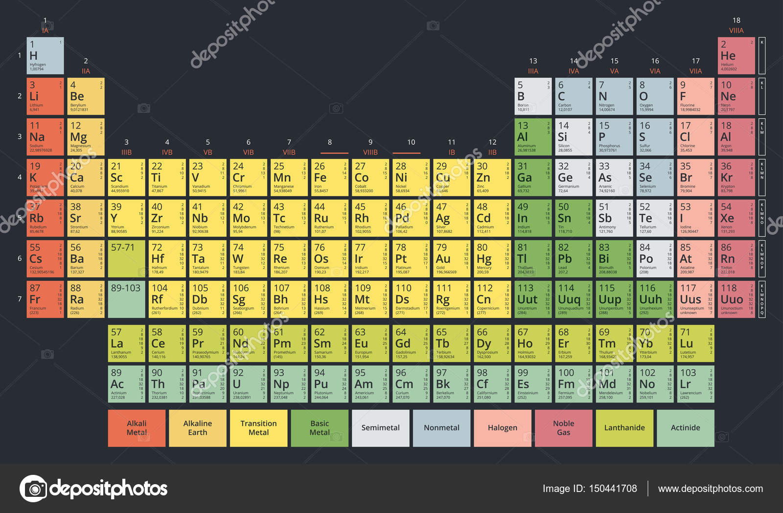 | 1 | 2 IIA | 3 IIIB 3B | 4 IVB 4B | 5 В. Б. 5B | 6 VIB 6B | 7 VIIB 7В | 8 VIII, 8 | 9 VIII 8 | 10 VIII 8 | 11 И.Б. 1B | 12 МИБ 2B | 13 IIIA 3A | 14 IVA 4A | 15 9045 8 ВА 5A | 16 VIA 6A | 17 VIIA 7A | 18 VIIIA 8A | ||||||||||||||||||||||||||||||||||||||||||||||||||||||||||||||||||||||||||||||||||||||||||