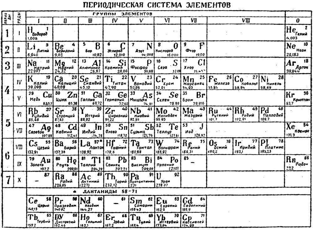 Как выглядела периодическая таблица элементов Менделеева?