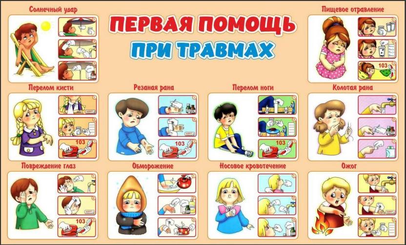 Первая помощь при порезах, ссадинах, ушибах, кровотечении, отравлении, солнечном ударе. Домашняя аптечка | Первая помощь | – |