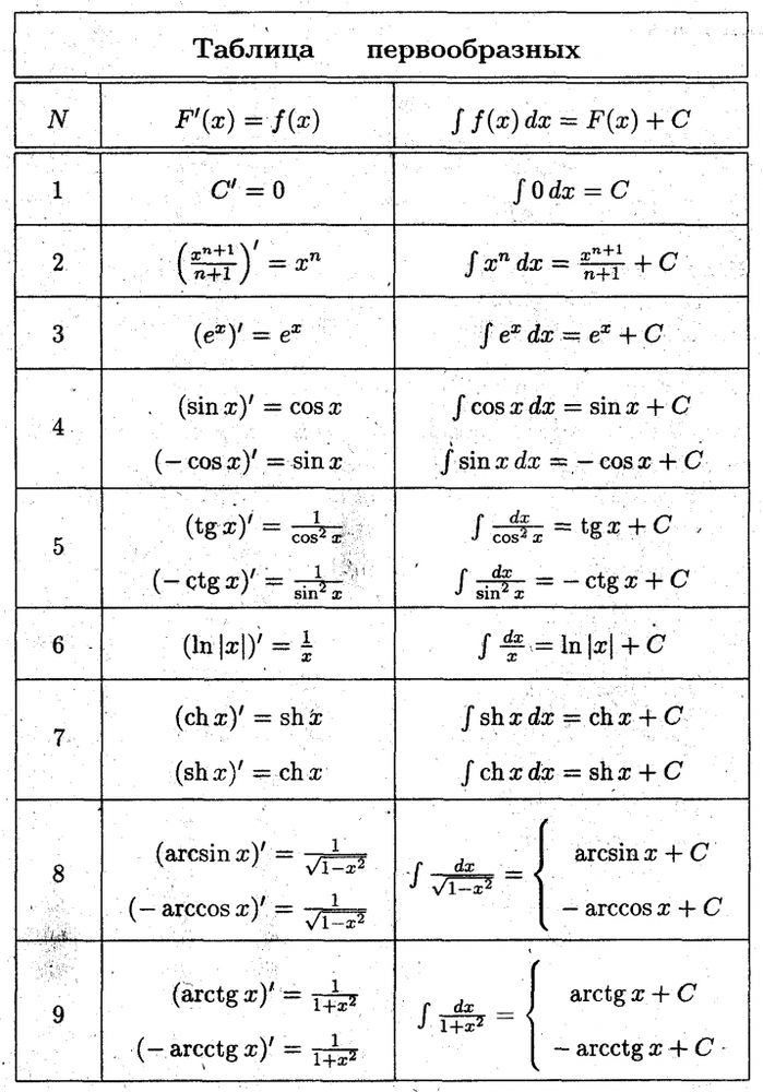 Для нахождения первообразных существует специальная таблица. В ней приведены первообразные для каждой функции. А чтобы убедиться в этом, можно найти производную от первообразной и сравнить с функцией. Они будут одинаковые.
