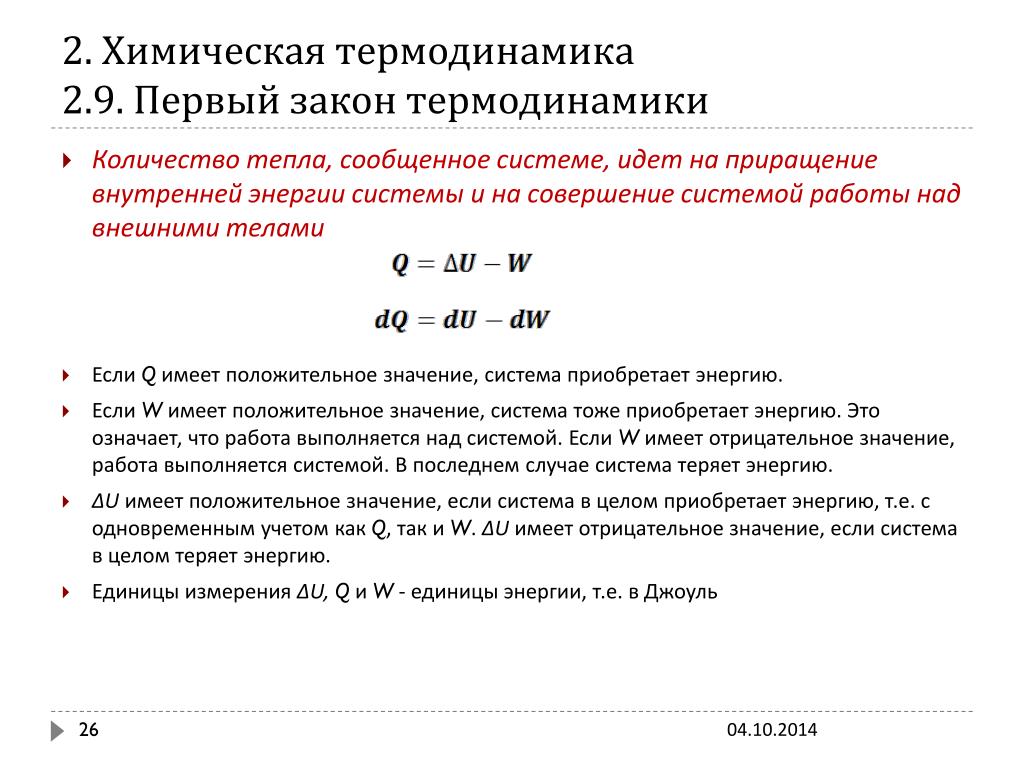 Однако Q может быть как положительным, так и отрицательным. Если Q положителен, тепло поступает в систему из окружающей среды; если Q отрицательно, тепло покидает систему и уходит в окружающую среду.