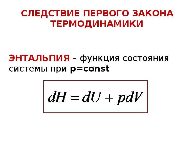 Первый закон термодинамики гласит, что количество поглощаемой теплоты, когда некоторое количество теплоты сообщается системе, способной совершать внешнюю работу, равно сумме увеличение внутренней энергии системы за счет повышения температуры и внешней работы, совершаемой при расширении.