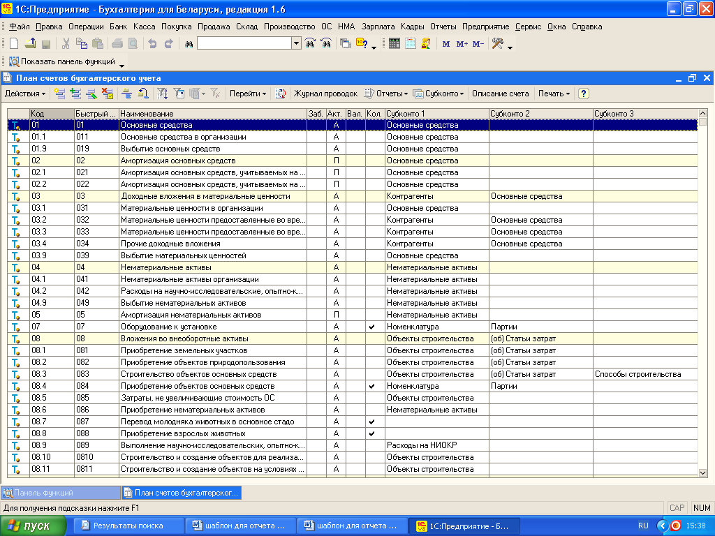 Пример плана счетов