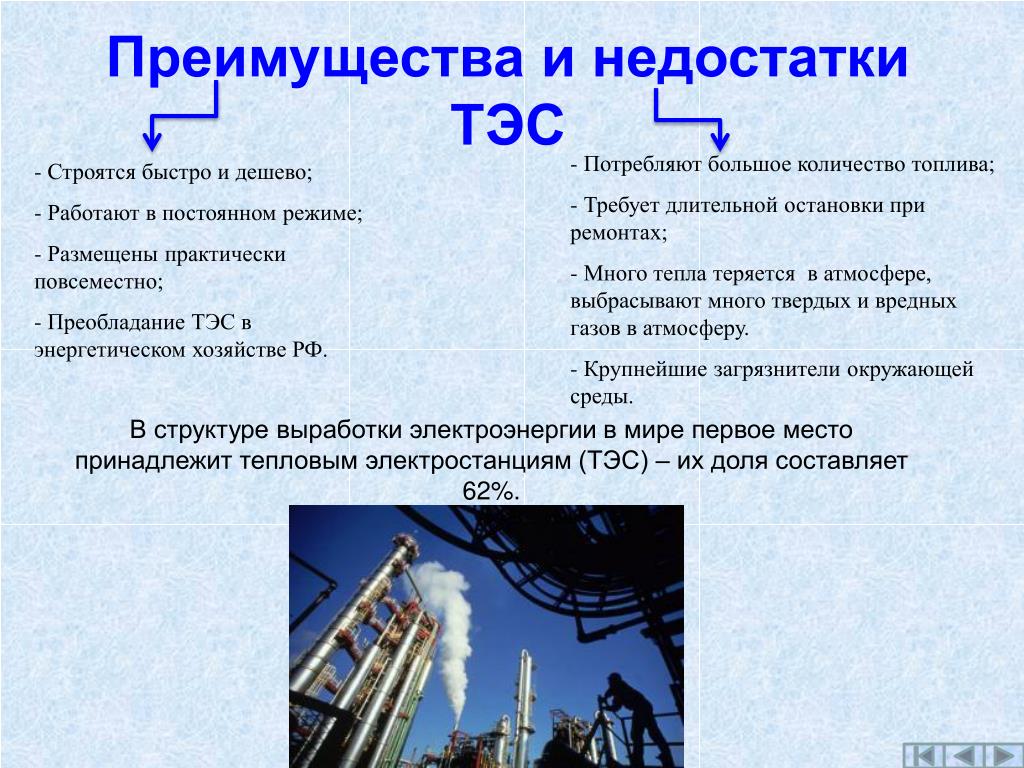 Экологически “грязные”, особенно работающие на угле, торфе и мазуте (выбросы вредных веществ в атмосферу). Работают на исчерпаемом виде топлива. “Парниковый эффект”. |