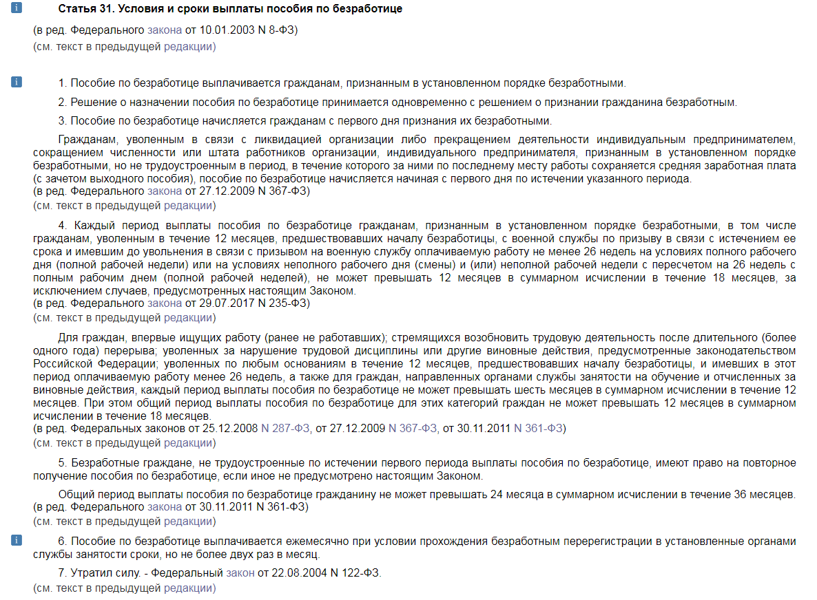 Пособие от центра занятости при сокращении