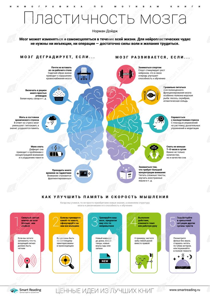 Каждая неделя — новое изменение. Автор предлагает делать по одному небольшому, но важному изменению в неделю — от развития музыкального слуха до потребления полезной для мозга пищи и отказа от мультизадачности.
