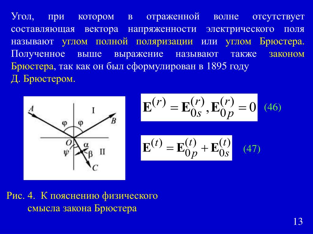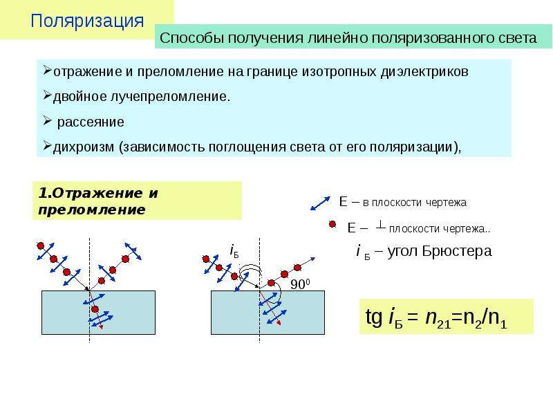 Поляризация при отражении и преломлении света