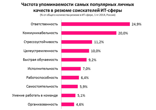 Наиболее ценятся качества, которые описывают ответственный подход к работе.