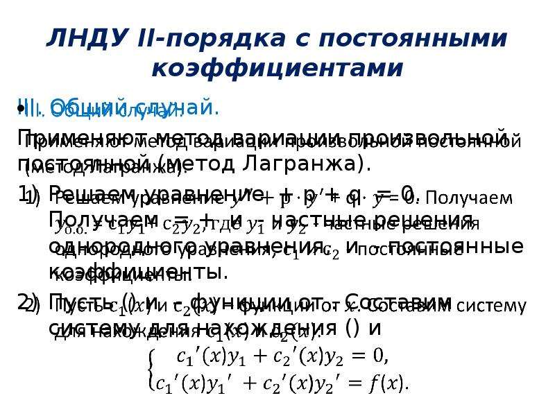 Рассмотрим дифференциальное уравнение типа y ′ ′ + py ′ + qy = 0, где p, q – некоторые постоянные коэффициенты.