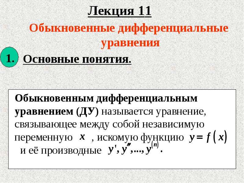 Определение. Наивысший порядок производных, входящих в уравнение, называется порядком дифференциального уравнения.