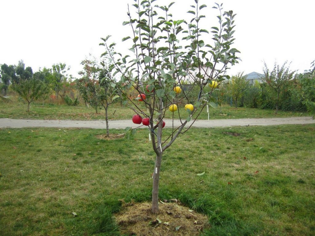 Если этого не делать деревце тяжелее укореняется и плохо растет в первый год. После чего обмокните саженец в земляной жиже (консистенция густой сметаны) и сразу же опустите в посадочную яму. Равномерно распределите корни по холмику и засыпьте их плодородной почвой. Слегка стряхните деревце, чтобы почва заполнила все пустоты. Сажайте на такую глубину, чтобы корневая шейка осталась на уровне почвы, при этом учтите, что почва со временем осядет. После посадки почву хорошо утрамбуйте. Деревце привяжете к колу, используя тканевую веревку. Вокруг саженца сделайте небольшую лунку, чтобы вода во время поливов не вытекала. Деревце полейте двумя-тремя ведрами воды, чтобы почва увлажнилась на глубину залегания корней. Если посадку проводите осенью, саженец на зиму, окучьте землей на высоту 30 см.