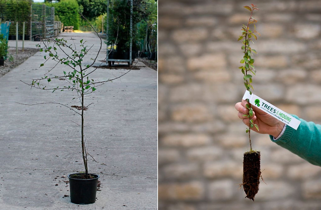 От черенков с голыми корнями лучше отказаться, если есть такая возможность; их корни определенно более уязвимы к повреждениям при транспортировке и потере воды, это означает, что дерево приживается хуже. Между тем, рассада в тюках и в контейнере не будет препятствовать растительности. Поэтому их выращивание легче, и они быстрее принимаются на новом месте.