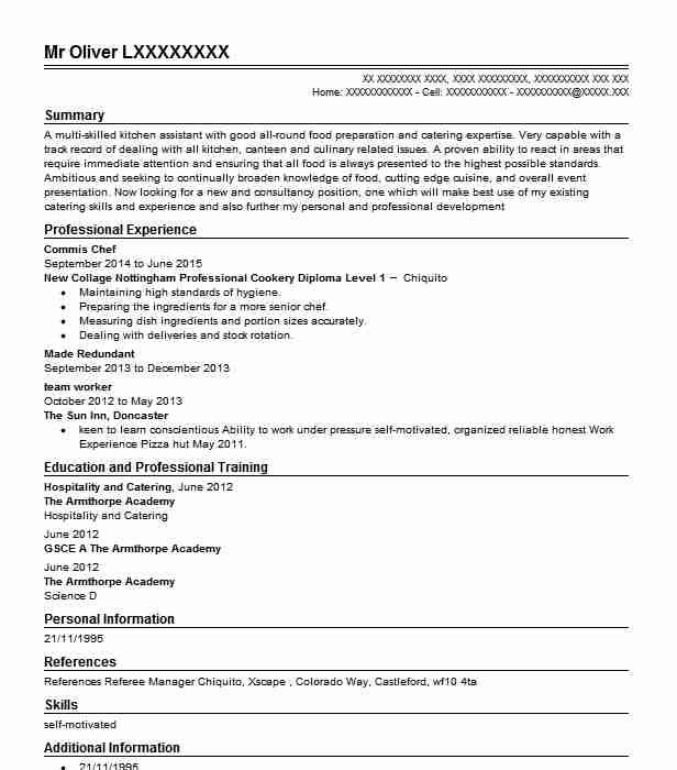 - Работал с различным кухонным оборудованием, включая слайсер, пароварку, фритюрницу, плиту, духовку, гриль, блендер и кастрюлю.
