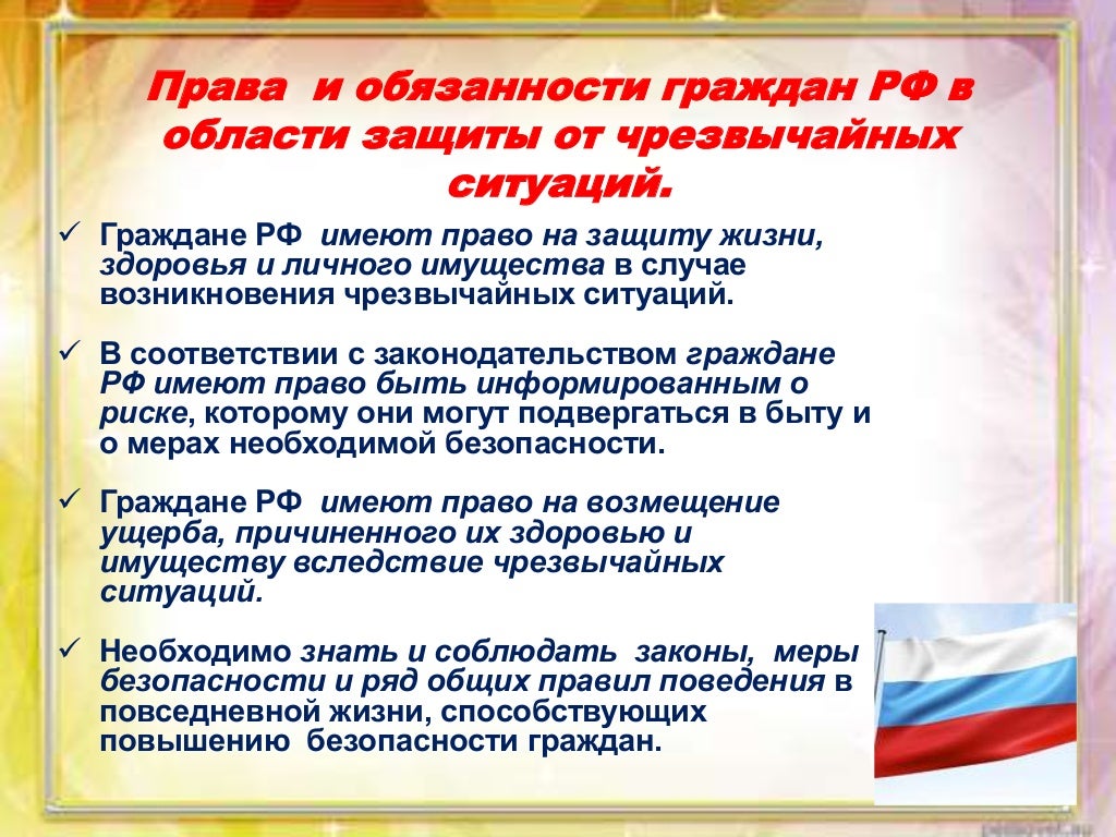 Права и обязанности граждан Российской Федерации в области гражданской обороны.