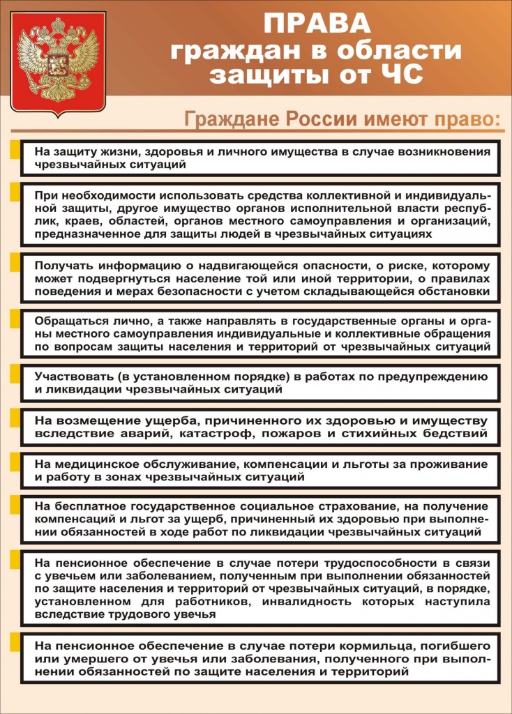 – на защиту жизни, здоровья и личного имущества в случае возникновения чрезвычайных ситуаций;