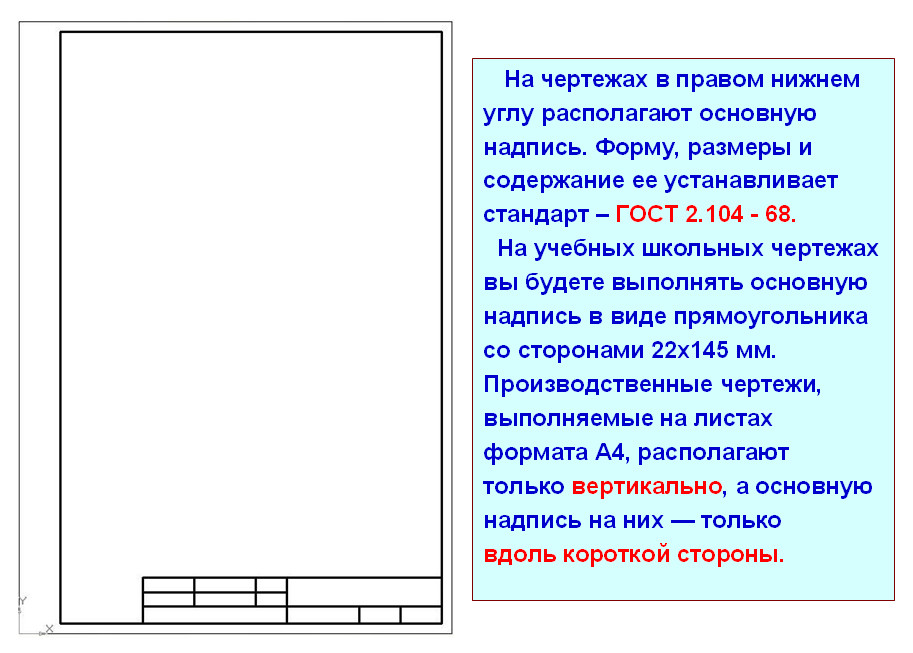•познакомить с понятиями «формат» и «основная надпись»;