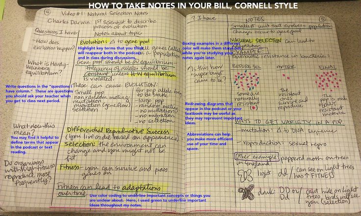 - Кодируйте свои заметки — используйте цвет и символы, чтобы обозначить структуру и выделение, выделить основные разделы, основные моменты и диаграммы. Используйте разные цвета, чтобы выделить основные моменты, классифицировать различные темы и связать понятия или информацию.