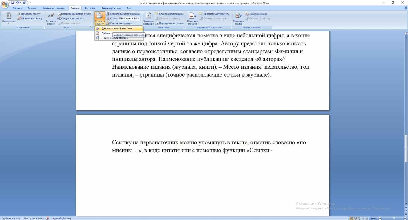 Организация и форматирование рукописи