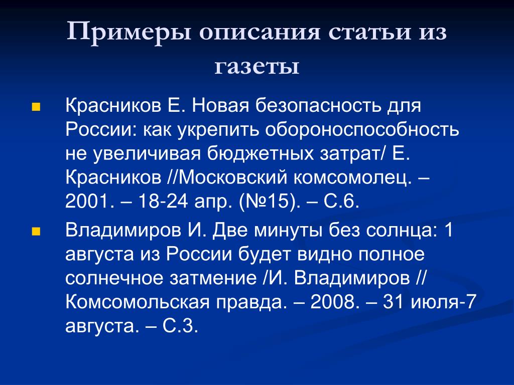 Просьба оформлять материал по следующему образцу: