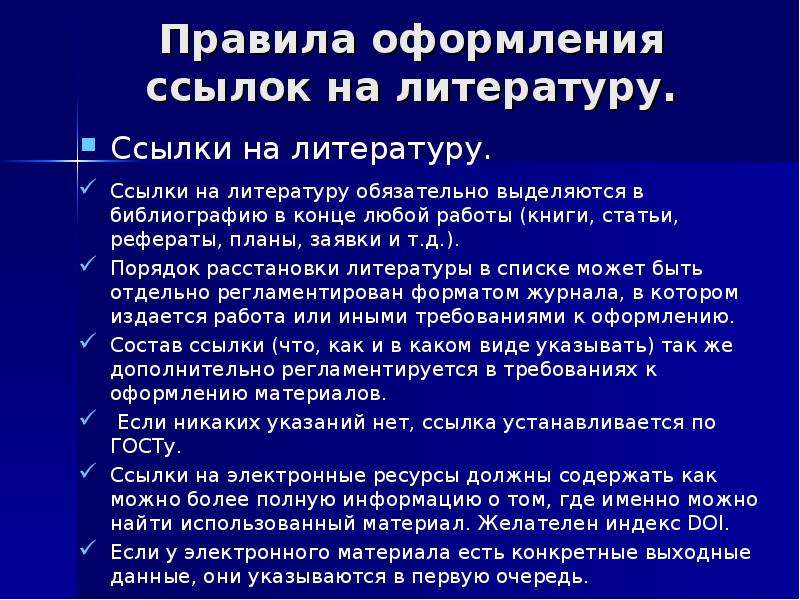 Все ссылки, упомянутые в списке литературы, должны быть процитированы в тексте, и наоборот.