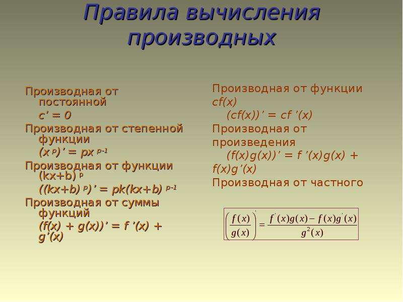 Конспект урока “Производная. Правила и формулы дифференцирования”
