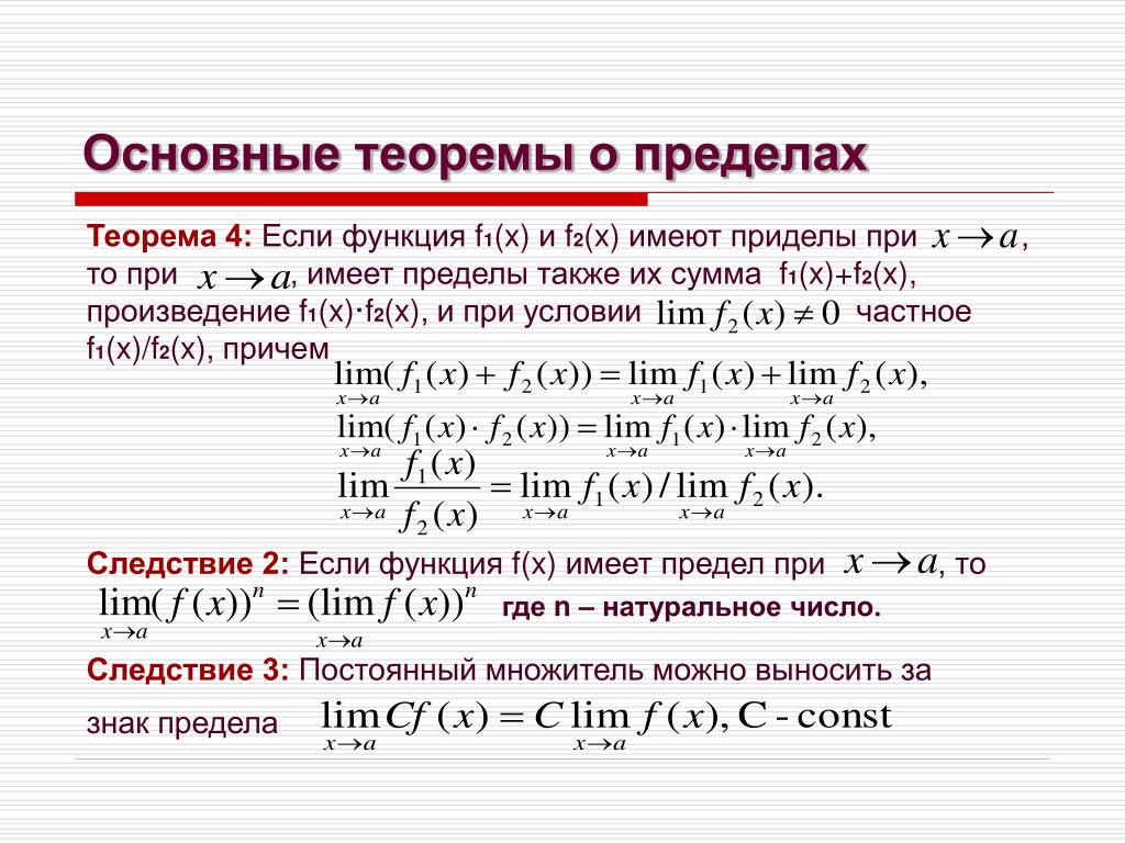 Основные правила вычисления пределов, связанные с арифметическими операциями