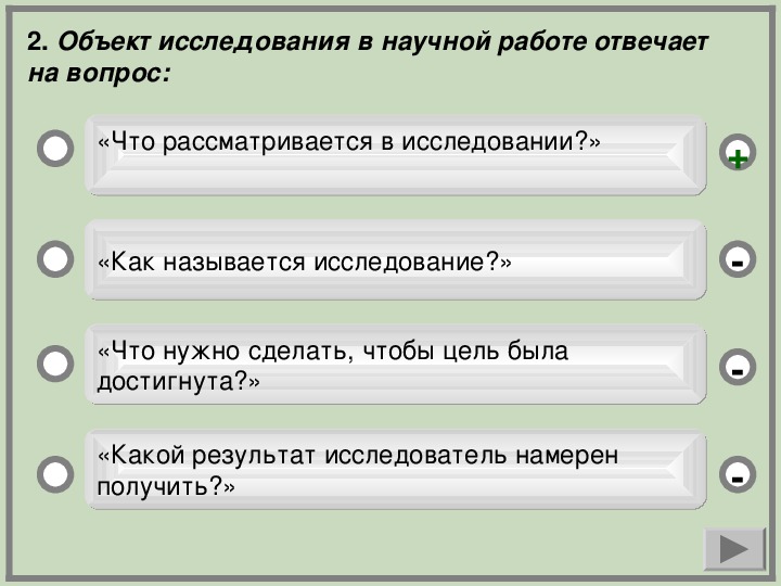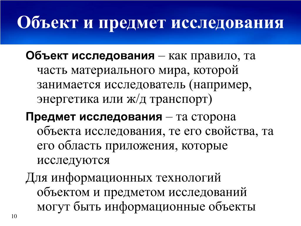 Предмет исследования – наука в целом или отдельные ее стороны и проявления (свойства, состояния, процессы, отношения).