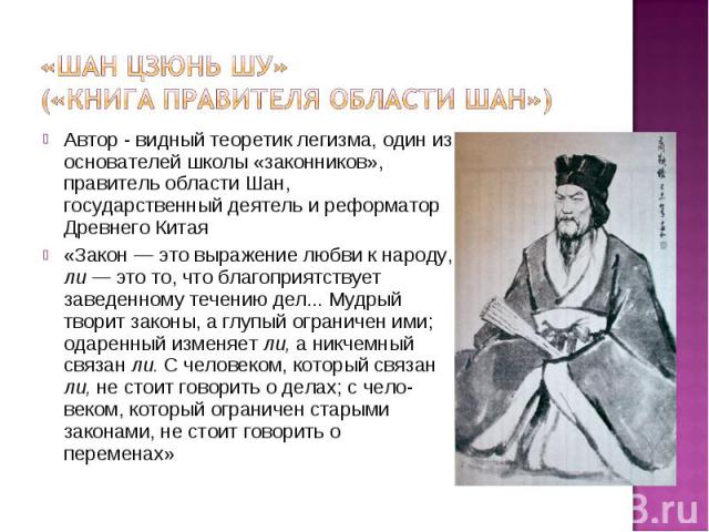 цзюнь шу» («Книга правителя области Шан»).