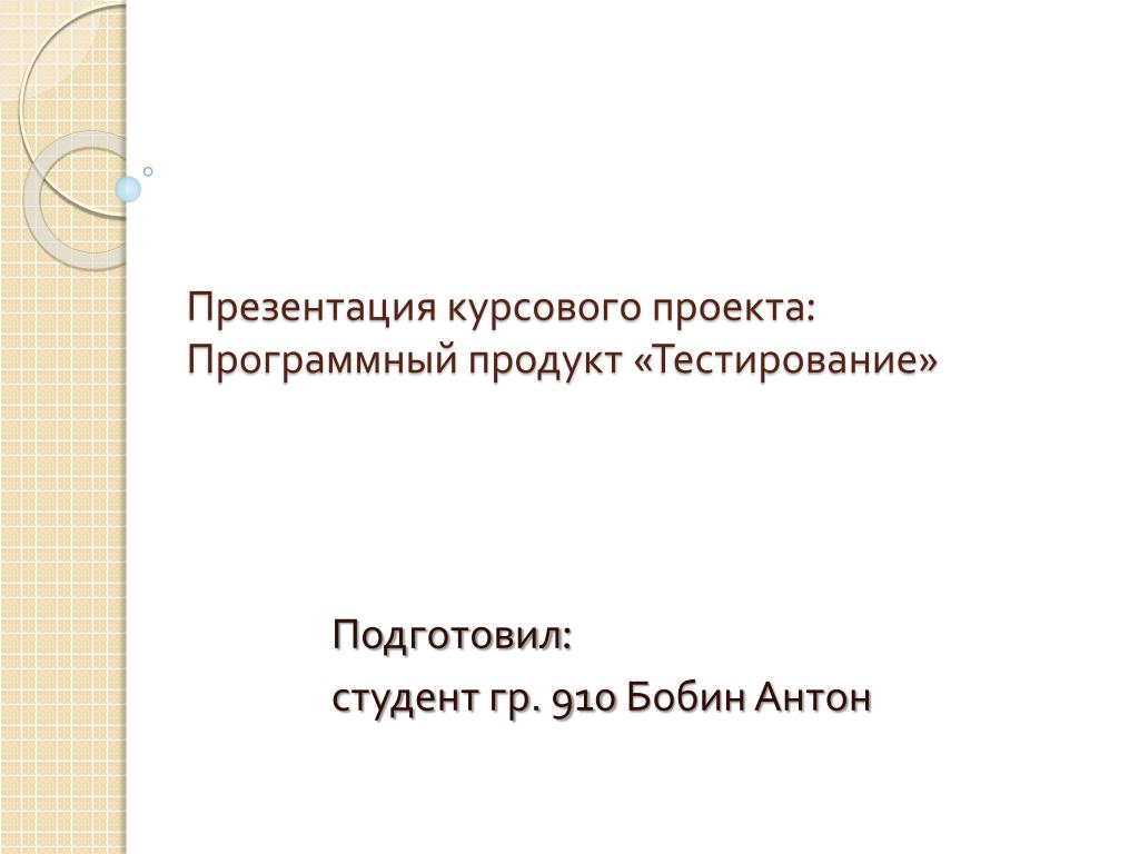 Первый слайд в презентации знакомит аудиторию с автором курсовой работы и представляет тему доклада.