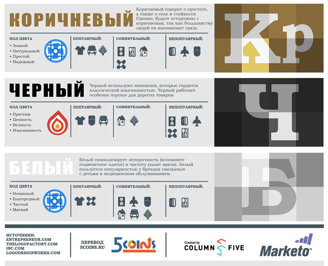 Коричневый — цвет, которому можно доверять. Коричневый прикрывает вашу спину, коричневый был рядом с вами в течение многих лет и останется с вами на долгие годы. Что касается UPS, Браун доставляет посылки к вам домой в целости и сохранности и обещает, что все, что вы отправляете с ними, дойдет до места назначения целым и невредимым. В маркетинге и рекламе коричневый обычно означает: