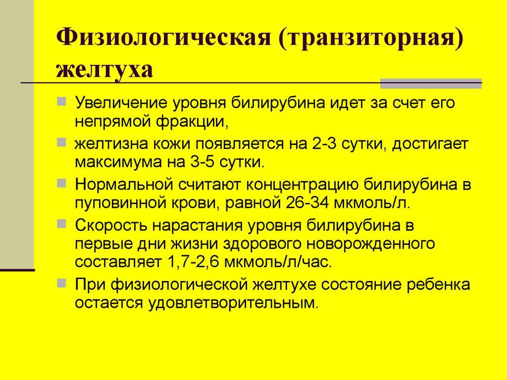 Желтуха часто встречается у новорожденных, потому что красные кровяные тельца младенцев быстрее разрушаются. Кроме того, печень новорожденного не полностью развита, поэтому она удаляет билирубин из крови не так эффективно, как у взрослого человека. Плюс – низкое содержание бактерий в кишечнике новорожденных также влияет на обмен билирубина, увеличивая его содержание в крови. Обычно к концу второй недели жизни малыша его печень начинает справляться с количеством билирубина, и показатель приходит в норму.