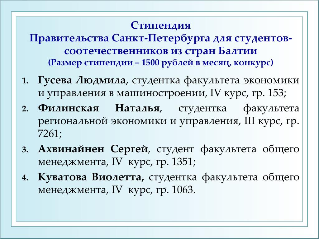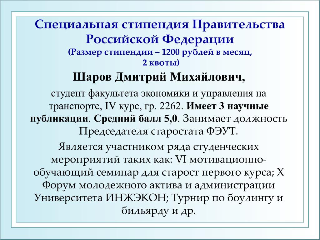 Cтипендия студентам, осваивающим содержание образовательных программ высшего образования I ступени