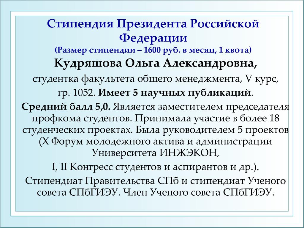 Cтипендия студентам, осваивающим содержание образовательных программ высшего образования II ступени
