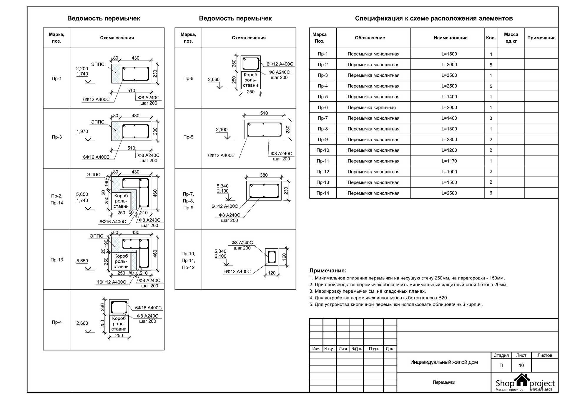 - Монтажный план сборных ж.б. перемычек см. чертеж № __АР.