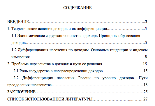 Как оформить содержание по ГОСТу