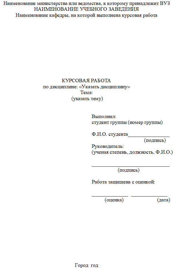 - Как оформить титульный лист курсовой работы по ГОСТу