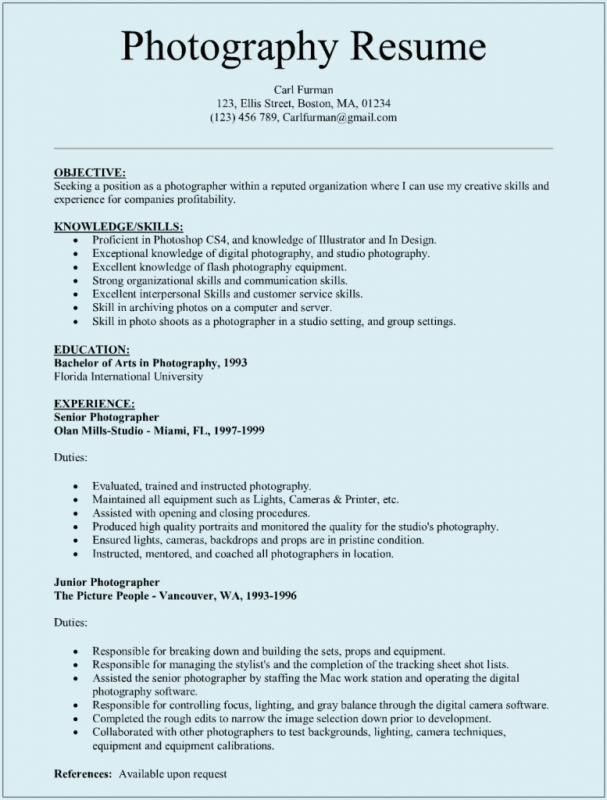Позвольте следующим двум примерам резюме фотографа начального уровня представить вас на картинке.