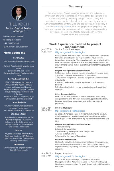 Резюме каждого менеджера проектов, естественно, будет выглядеть немного по-разному, потому что нет двух менеджеров проектов с одинаковым опытом.
