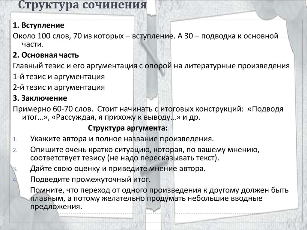 Написание эссе по литературе – не научная работа. - Создание живого разговора – при написании эссе по литературе происходит как бы имитация живого разговора с читателем, которого следует вести за собой, призывать различными вопросами, поднимать таким образом животрепещущие темы, как будто вы находитесь перед ним здесь и сейчас. Авторский монолог должен быть вне пространства и времени, наполнен живыми речевыми оборотами.
