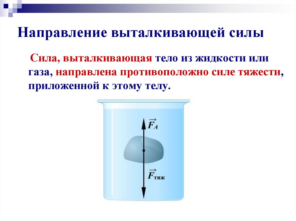 - чистая направленная вверх сила на любой объект в любой жидкости