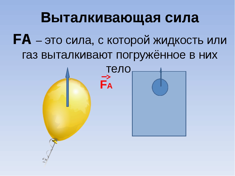 выталкивающей силой по закону Архимеда.