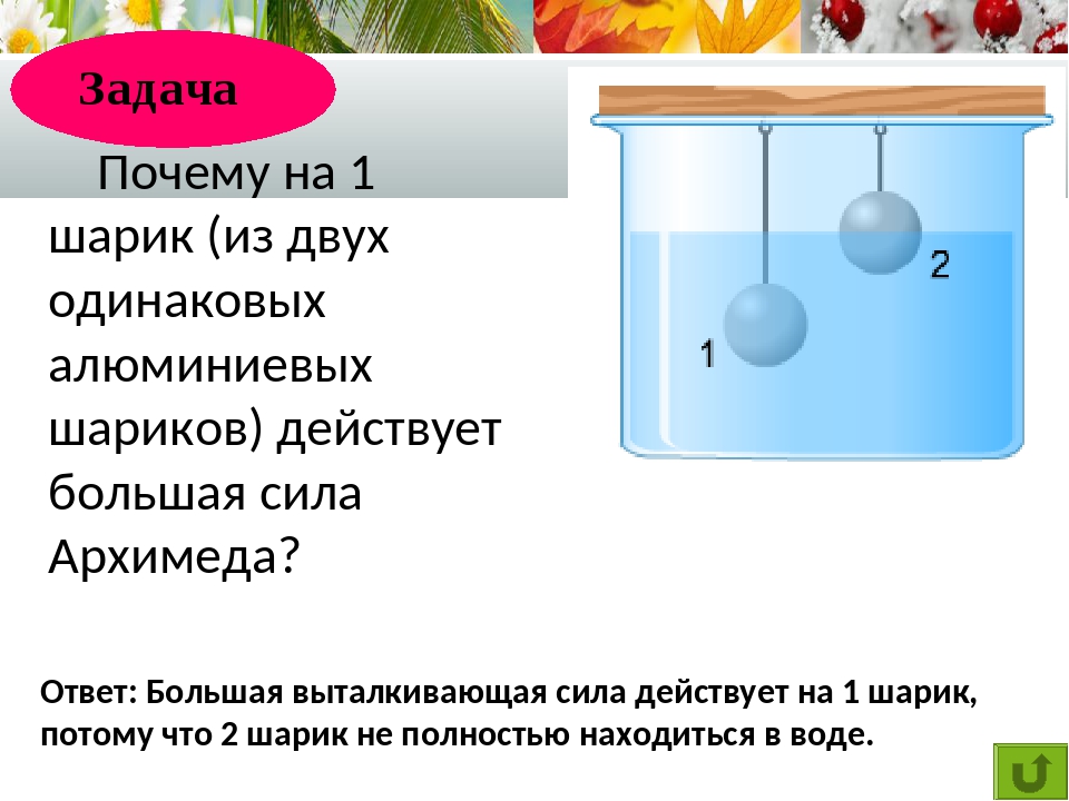 Примеры проявления закона Архиме