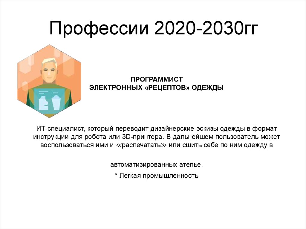 Профессии будущего — это профессии на стыке нескольких дисциплин, которые появятся через 15–20 лет. Такие профессии дополнят или заменят уже существующие.